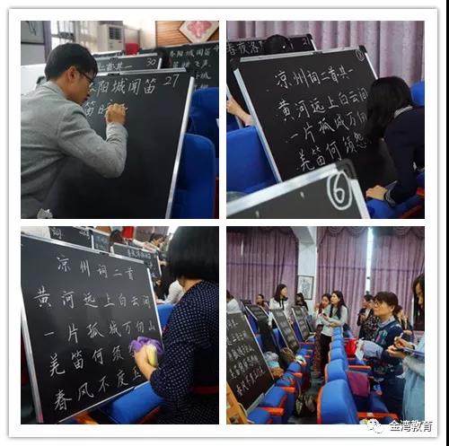 写一手规范、美观的粉笔字,是一名小学语文教师的专业追求。在粉笔字书写环节,参赛教师需要在规定的5分钟内,完成了自己的高质量作品。