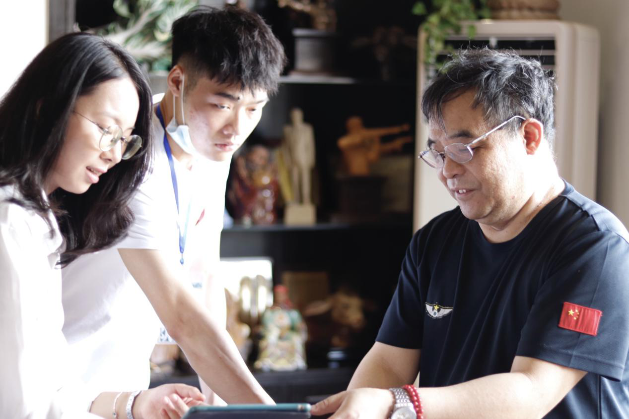 图为队员们向刘兆津老师进行采访,老师耐心做出解答,并简单介绍了他与陶塑文化的缘分。