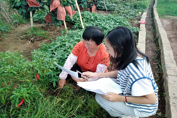 在去寻找采访人员的途中,曾舒妮遇到了在田地里干活的刘阿姨,在仔细观察了一下这位认真干活的阿姨之后发现,虽然在这闷热的夏日辛勤的劳动之后的汗水已经浸湿阿姨的衣衫,但她的脸上依然洋溢着愉快的笑容。经过简单地交谈,她们了解到刘阿姨恰巧也是建档立卡贫困户之一。